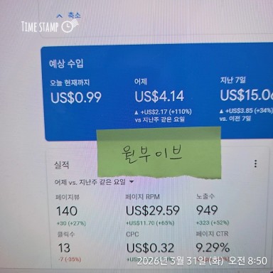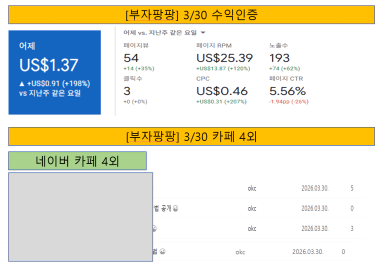 [아쿠아원] 3.28 애드센스 수익 인증 챌린지 66일차