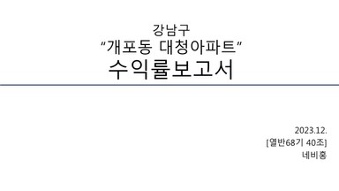 강남구 개포동 대청아파트 수익률 분석 보고서 [열반스쿨 기초반 68기 40조 네비홍]