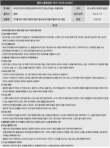 열반스쿨 중급반 '부자의 언어' 독서 후기 [열반스쿨 중급반 39기 103조 hala87]