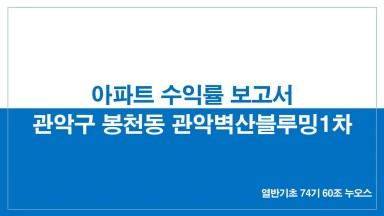 관악구 봉천동 봉천벽산블루밍1차 아파트 수익률 분석 보고서 [열반스쿨 기초반 74기 60조 누오스]
