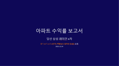영등포구 당산동 당산 삼성 래미안 4차 아파트 수익률 분석 보고서 [열반스쿨 기초반 68기 61조 윤꿩]