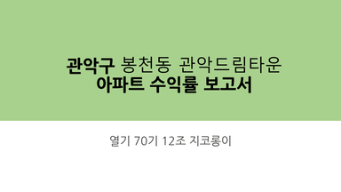 관악구 봉천동 관악드림타운 아파트 수익률 분석 보고서 [열반스쿨 기초반 70기 12조 지코롱]