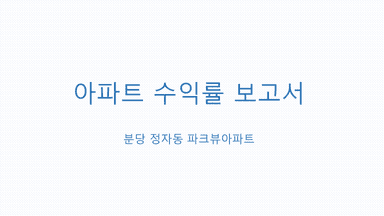 분당구 정자동 파크뷰아파트 수익률 분석 보고서 [열반스쿨 기초반 70기 57조 순당]