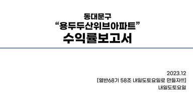 동대문구 용두동 용두두산위브 아파트 수익률 분석 보고서 [열반스쿨 기초반 68기 58조 내일도토요일]