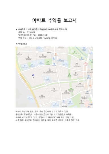 세종시 다정동 가온마을 4단지 아파트 수익률 분석 보고서 [열반스쿨 기초반 70기 9조 위대한개척자]