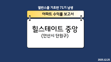 안산시 단원구 고잔동 힐스테이트 중앙 아파트 수익률 분석 보고서 [열반스쿨 기초반 71기 남생]