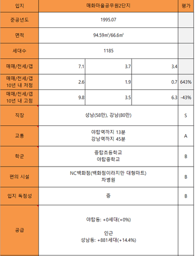 분당구 야탑동 매화마을공무원2단지아파트 수익률 분석 보고서 [열반스쿨 기초반 70기 61조 부동산갑부]