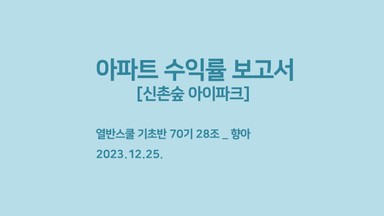 서울 마포구 신수동 신촌숲아이파크 수익률 분석 보고서 [열반스쿨 기초반 70기 28조 향아]