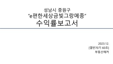 성남시 중원구 금광동 e편한세상금빛그랑메종 아파트 수익률 분석 보고서 [열반스쿨 기초반 70기 60조 부동산해커]