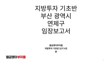 부산광역시 연제구 임장보고서 [지방투자 기초반 32기 4조 롼]