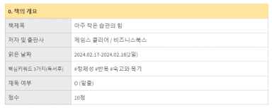 [열중35기 1래 상위1% 부자될8자 우리의봄] 아주 작은 습관의 힘 독서후기