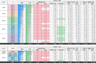 [만평이] 11월 기준, 10월 수도권 1~5급지 매매·전세 시세조사(평단가·전세가율) 엑셀 지도 (양식첨부)