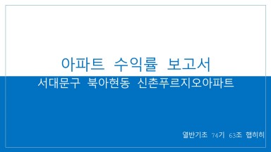 서대문구 북아현동 신촌푸르지오아파트 수익률 분석 보고서[열반스쿨 기초반 74기 63조 햅히히]
