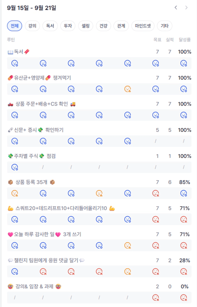 STEP1. 결과가 아닌 과정 되돌아보기 상품 가공이나 댓글 달기 같은 목표를 지키기가 쉽지 않았다. 본업 일정도 갑자기 들어오고, 행사도 많다 보니 자꾸 밀리고 뒤처지는 느낌이 들었다. 체력도 좀 딸려서 꾸준히 하기 어려웠다. STEP2. 잘못된 방향 빠르게 수정하기 휴가를 앞두고 있어서 그런지 전체적으로 일이 느려졌다. 해야 할 건 많은데 시간은 부족하