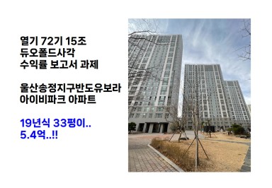 울산 북구 송정반도유보라아이비파크 아파트 수익률 분석 보고서[열기 72기 15조 듀오폴드사각]