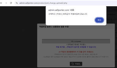키워드및 마이카테고리까지 모두 완료 후 파일업로드 시 오류 어떻게 해결하나요?