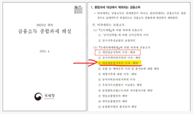 종합과세 대상에서 제외되는 금융소득관련 문의 드립니다.