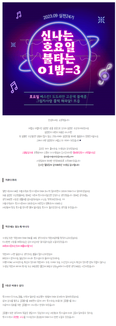 [실전24기 신나는호요일불타는ㅇ1밤=3 쫄떡] 실전반 수강을 마무리 하며 (feat. 주우이님 강의 후기).