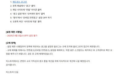 [시카고 타자기] 티스토리 블로그 공지!! 전면광고 제한 된다고 합니다