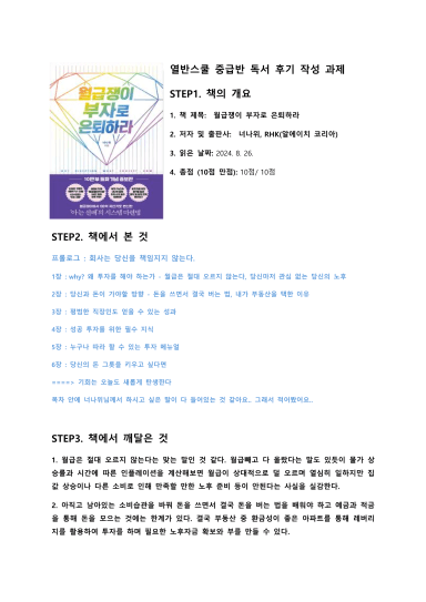 열반스쿨 중급반 월급쟁이 부자로 은퇴하라 독서 후기 [열반스쿨 중급반 39기 120조 마음이 부자]