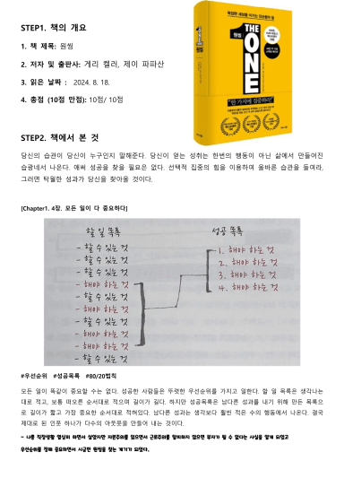 열반스쿨 중급반 원씽 독서 후기 [열반스쿨 중급반 39기 120조 마음이 부자]