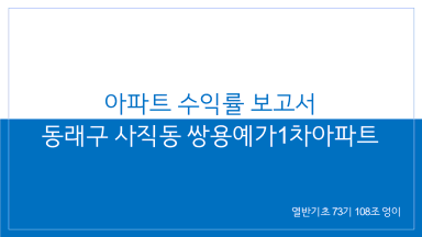 동래구 사직동 쌍용예가 1차 아파트 수익률 분석 보고서 [열반스쿨 기초반 73기 108조 엉이]