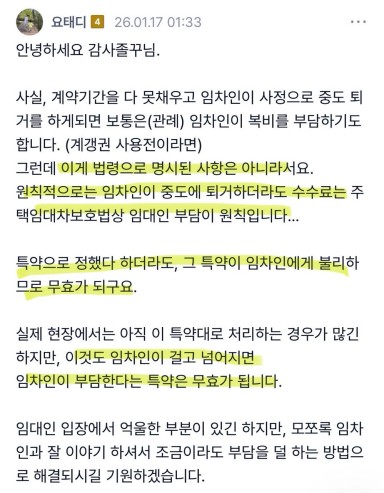 계갱권 쓰고 중도 퇴거 알림 후 3개월 이내 새 임차인 찾았으면 부동산 중개수수료 누가?