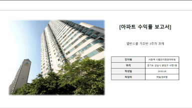 강동구 성내동 성내삼성아파트 수익률 분석 보고서 [열반스쿨 기초반 72기 94조 셀린123]
