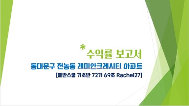 동대문구 전농동 래미안크레시티 아파트 수익률 분석 보고서 [열반스쿨 기초반 72기 69조 Rachel27]