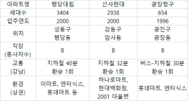 행당대림, 선사현대, 광장청구 입지분석 [내집마련 중급반 1기 17조 무무이]