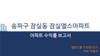 송파구 잠실동 잠실엘스 아파트 수익률 분석 보고서 [열반스쿨 기초반 65기 7전팔기 정신으로 경제적자유일9조 락솔트]