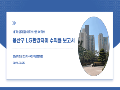 용산구 이촌동 LG한강자이 아파트 수익률 분석 보고서[열반스쿨 기초반 73기 49조 꾸준함이힘]