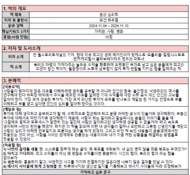 열반스쿨 중급반 돈의 심리학 독서 후기[열반스쿨 중급반 41기 98조 열공이]