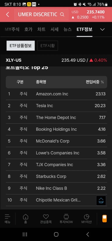미국주식 임의소비재(XLY) 섹터 TOP10 배당금과 배당성장률, 배당수익률