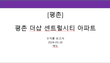 동안구 평촌동 평촌 더샵 센트럴시티 아파트 수익률 분석 보고서 [열반스쿨 기초반 72기 10조 혀누]