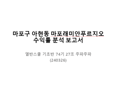 마포구 아현동 마포래미안푸르지오 아파트 수익률 분석 보고서 [열반스쿨 기초반 74기 27조 주파주파]