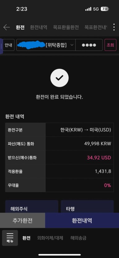 미국주식을 투자하기위한 환전 완료_이한솔
