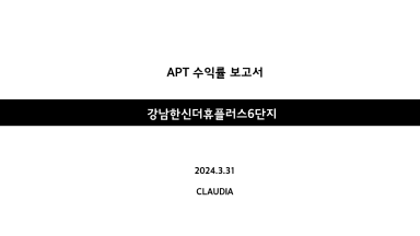 강남구 율현동 강남한신더휴6단지 아파트 수익률 분석 보고서 [열반스쿨 기초반 73기 24조 CLAUDIA]