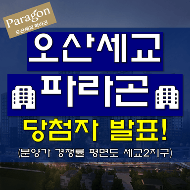 [오산시 부동산] 오산세교파라곤 당첨자발표 경쟁률 (서류, 특공, 1순위, 분양가, 평면도, 세교2지구, A-3블록)