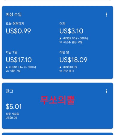 [무쏘의뿔] 4.19 애드센스 수익 인증