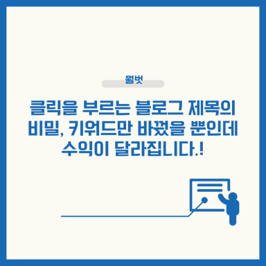 클릭을 부르는 블로그 제목의 비밀, 키워드만 바꿨을 뿐인데 수익이 달라집니다.!