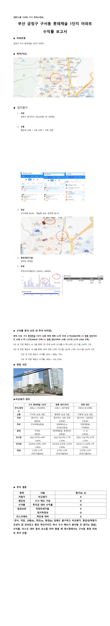 구서 롯데캐슬 1단지 아파트 수익률 분석 보고서 [열반스쿨 기초반 77기 83조 뜻하는대로]