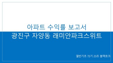 광진구 구의동 래미안파크스위트 수익률 분석 보고서 [열반스쿨 기초반 72기 23조 블랙호크]