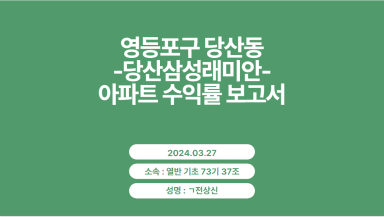 영등포구 당산동 당산삼성래미안 아파트 수익률 분석 보고서 [열반스쿨 기초반 73기 37조 ㄱ전상신]