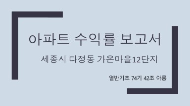 세종시 다정동 가온마을12단지 수익률 분석 보고서 [열반스쿨 기초반 74기 42조 아롱]
