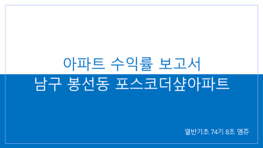 광주광역시 남구 봉선동 포스코더샆아파트 수익률 분석 보고서 [열반스쿨 기초반 74기 8조 엠쥬]
