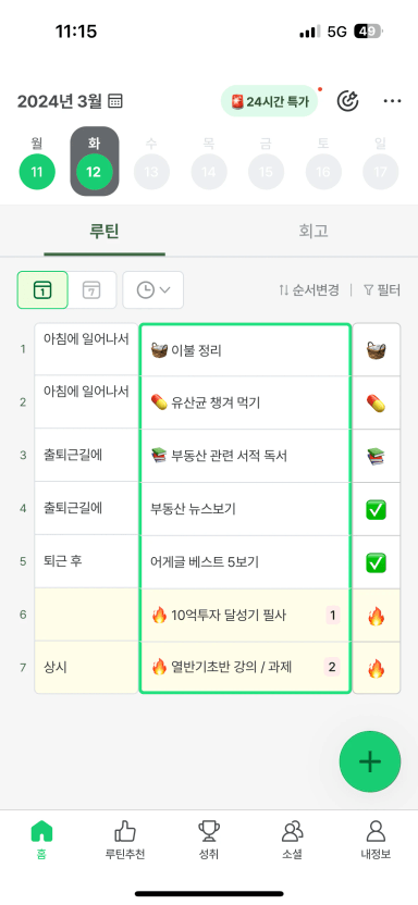 목표/실적/감사일기/시간가계부 (목실감) 과제 게시판에 쓰는 초초초 간단 복붙 양식