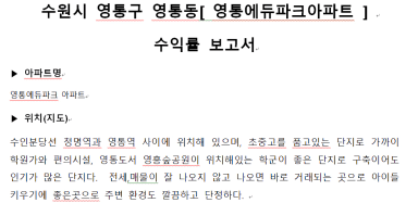 수원 영통구 영통동 영통에듀파크아파트 수익률 분석 보고서 [열반스쿨 기초반 77기 이뤘다]