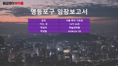 서울특별시 영등포구 4주차 임장보고서 [서울투자 기초반 14기 우리가 2뤄낼 4실은 경제적 자유조 하늘과바람]
