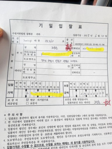 [경매올인원] 캐리99의 기일입찰표 작성 인증